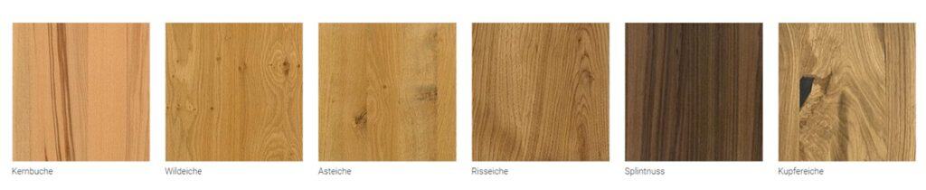Liebst du echtes Holz, stehen dir 4 Massivholzarten zur Auswahl.
