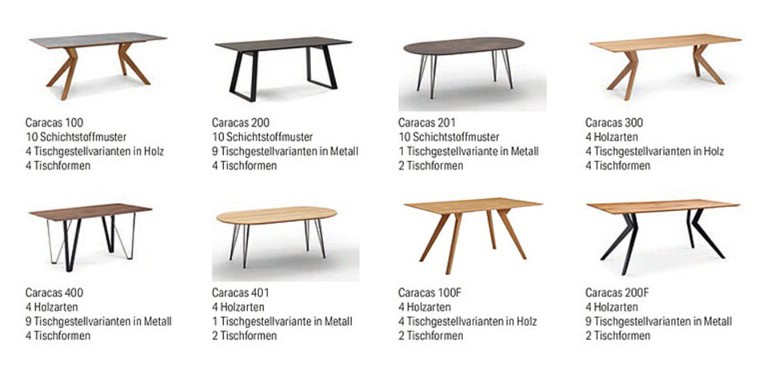 Mit dem Tischsystem „Caracas“ findest du genau den Tisch, der zu dir, deinem Zuhause und deinem Lebensstil passt. Du gestaltest ihn ganz nach deinen Vorstellungen: Wähle dein Lieblingsmodell, kombiniere dein Wunschgestell und entscheide dich für die Tischplatte, die deinen Raum perfekt ergänzt. So entsteht ein Esstisch, der nicht nur funktional überzeugt, sondern auch optisch ein echtes Highlight ist.