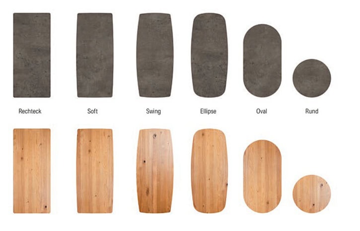 Je nach Modell kannst du aus verschiedenen Tischformen wählen: