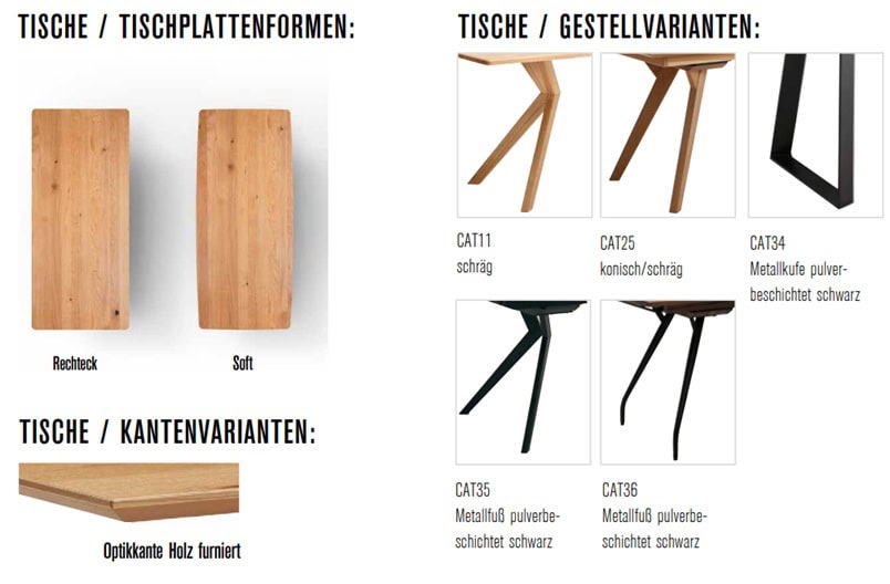 - Edle Tischplatten: Furniert in Kupfereiche gebürstet – natur matt geölt oder bronze geölt.