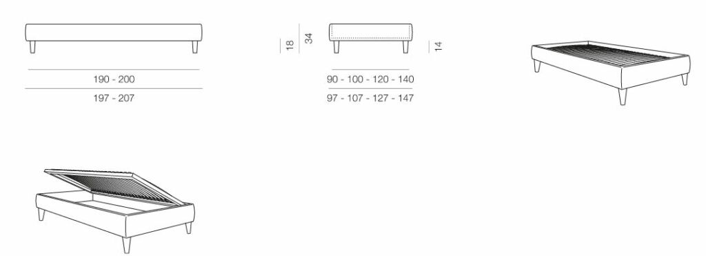 | Sitz- / Liegefläche in cm | 90/190 | 90/200 | 100/200 | 120/200 | 140/200 |