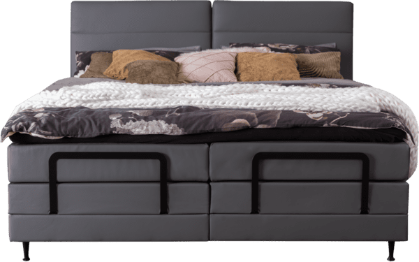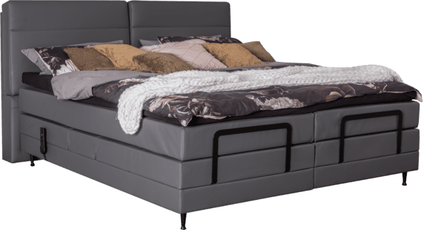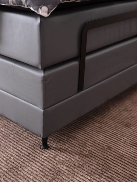 Kopf- und Fußteil des Boxspringbettes lassen sich mit der motorischen Verstellung individuell arrangieren. Positionieren Sie per Fernbedienung beide Bettseiten nach Wunsch, um besonders gemütlich fernzusehen, zu lesen oder einfach zu entspannen. Die Bügel am Fußende stellen sicher, dass die Matratze in Form bleibt.