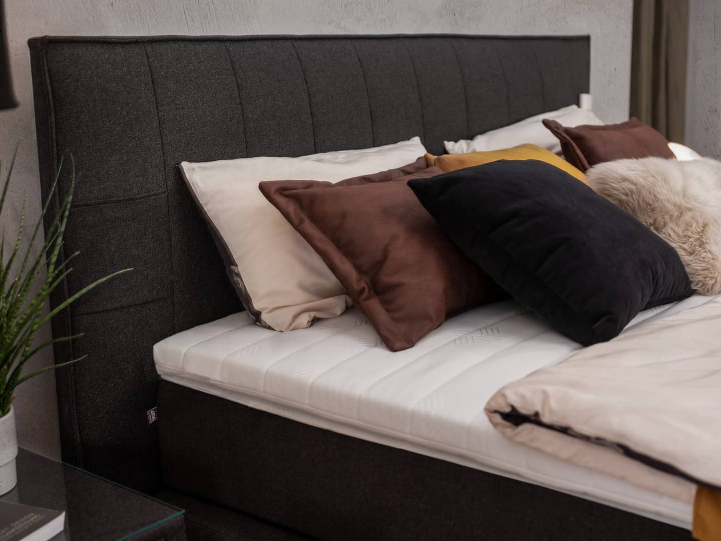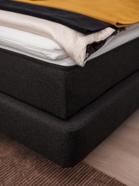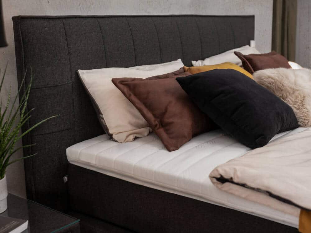 Feiner Stoff umgibt das Kopfteil und die Box. Nach Wunsch ausgesucht, verleihen Sie dem Boxspringbett damit Ihre persönliche Designnote. Geschmackvolle Ziernähte runden das trendige Bettmodell formvollendet ab.