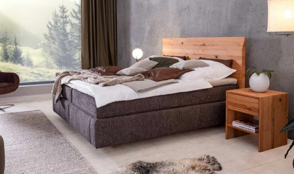 Der alpine Lifestyle wird durch aufregende Holzmaserungen und erlesene Bezugsmaterialien gekonnt wiedergeben. Hinzu kommt das besonders komfortable Boxspringsystem, das in seinem schichtartigen Aufbau und mit einer angenehmen Einstiegshöhe beste Schlafqualität garantiert.