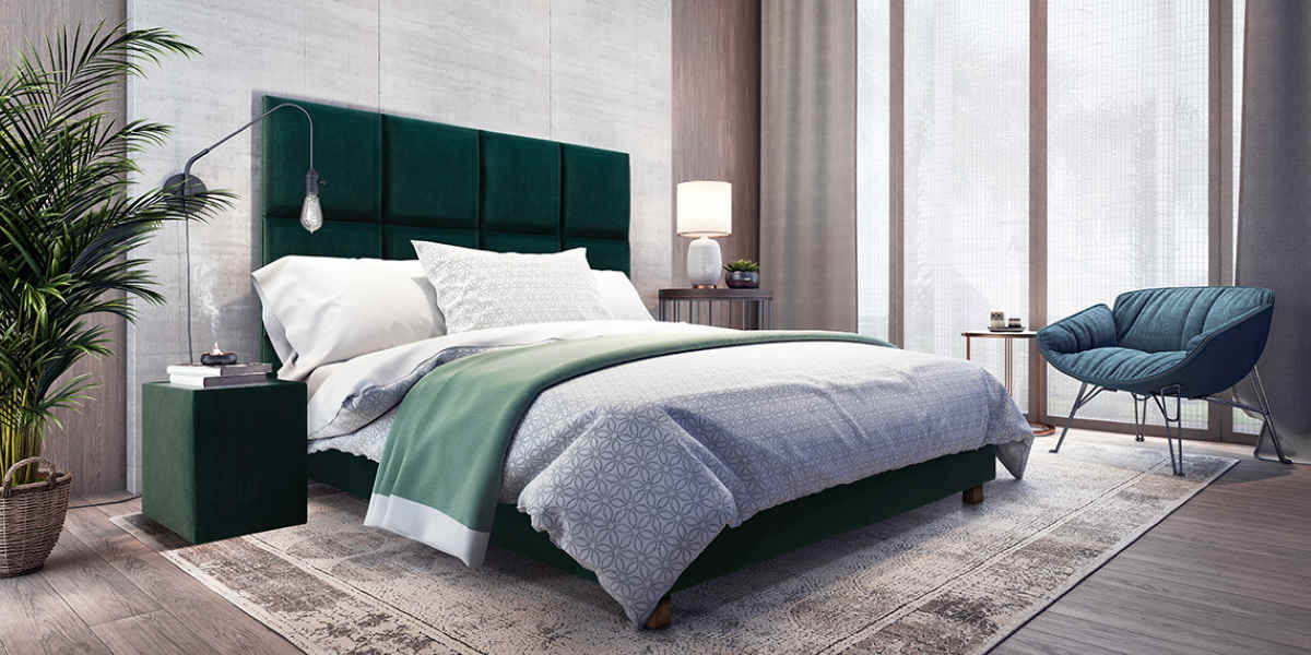 Das formschöne Kopfhaupt mit moderner, quadratischer Steppung macht das Bett zu einem wahren Blickfang. Die zusammenlaufende Form eines jeden Elementes und die Tiefheftung verleihen dem imposanten Kopfhaupt eine einzigartige Tiefenwirkung mit 3D-Effekt. In Kombination mit einfärbigen Stoffen entsteht so Spielraum für verschiedenste Gestaltungsmöglichkeiten.
