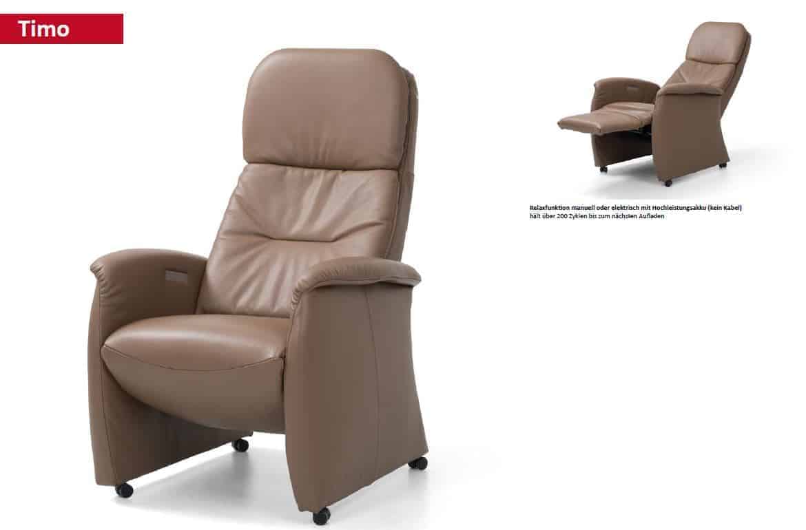 Der temperamentvolle Fernsehsessel Timo mit Rollen bringt Schwung ins Wohnzimmer. Erhältlich in unterschiedlichen Varianten gibt die clevere Ausstattung den Rhythmus für besten Sitzkomfort vor: Seine Relaxfunktion mit zurückklappbarer Lehne und ausfahrbarem Fußteil funktioniert je nach Wunsch mechanisch oder elektrisch.