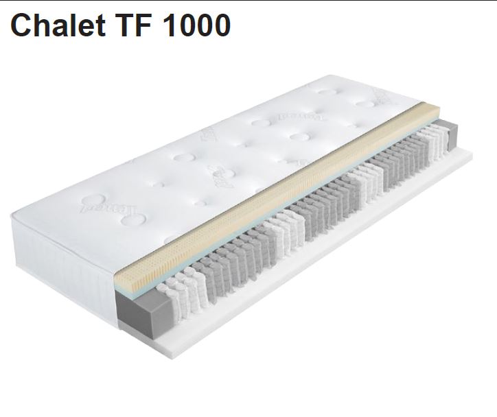 Hochelastischer 7-Zonen Tonnentaschenfederkern mit ca. 1000 Microfedern (bei 2 m2 Federkernfläche). Die stützende Kaltschaum Zwischenschicht und einer durchlochten 40 mm Latexauflage auf der Liegeseite sorgen für einen angenehmen Liegekomfort und ein ausgewogenes Microklima.