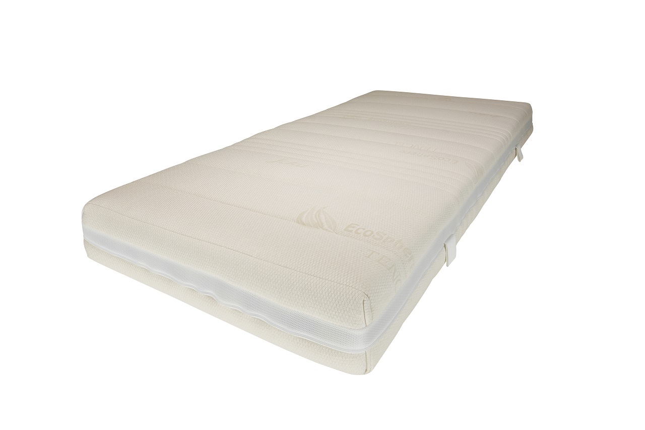 Die Matratze mit knickbarem, 7-Zonen-Tonnentaschenfederkern (mit 500 Taschenfedern pro m2) und einer Oberpolsterung bestehend aus einer Mehrzonen-Komfortschaumauflage aus EMC®-Verde. Die durch aufwändige Längs- und Quereinschnitte aufgelöste Oberfläche sorgt für eine punktelastische Federung. In den Härtegraden mittelfest, fest und gemischt erhältlich. Der hochwertige Eco-Sphere-Bezug mit Tencel®/PES-Vlies versteppt verfügt sowohl über vier Wendeschlaufen als auch ein umlaufendes Klimaband.
