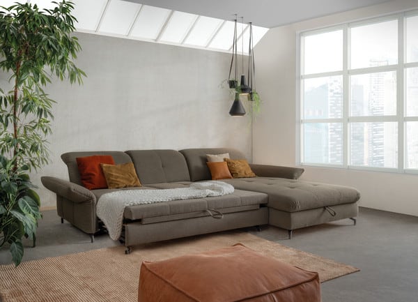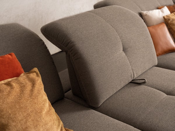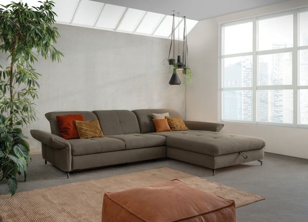 KEANO ist zudem ein echter Verwandlungskünstler, wenn es darum geht, die Couch zu planen. Fügen Sie je nach Bedürfnis optionale Details wie eine Doppelliegefunktion, einen Bettzeugraum, eine Rund- oder eine Trapezecke oder eine großzügige Chaiselongue hinzu.