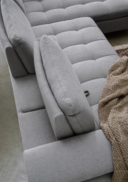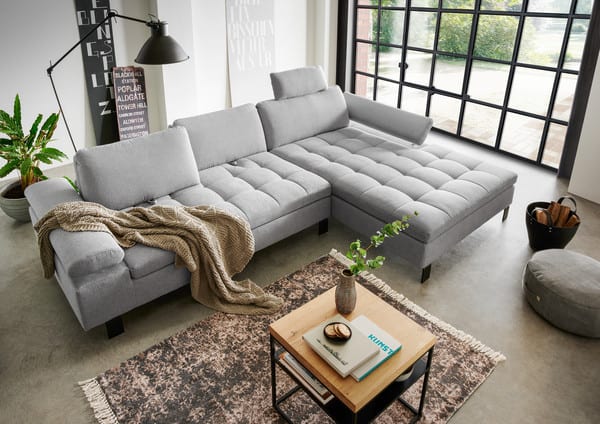Verleihen Sie dem Ecksofa mit einem ausgewählten Bezug aus Stoff oder Leder Ihre persönliche Designnote.
