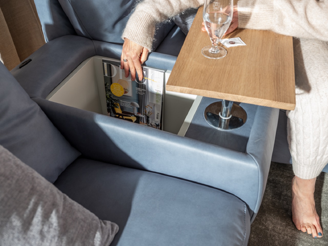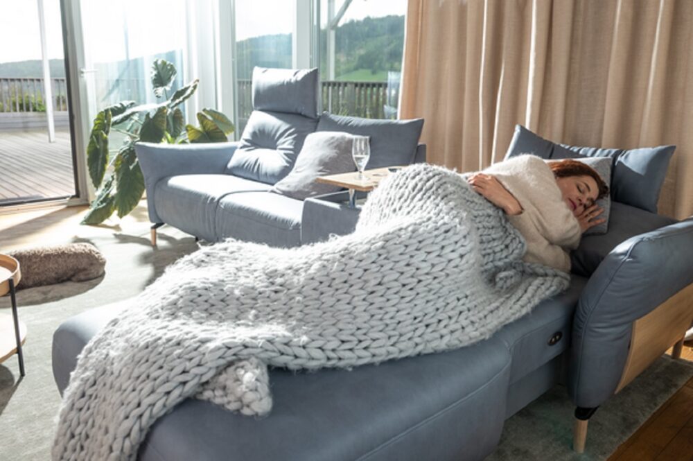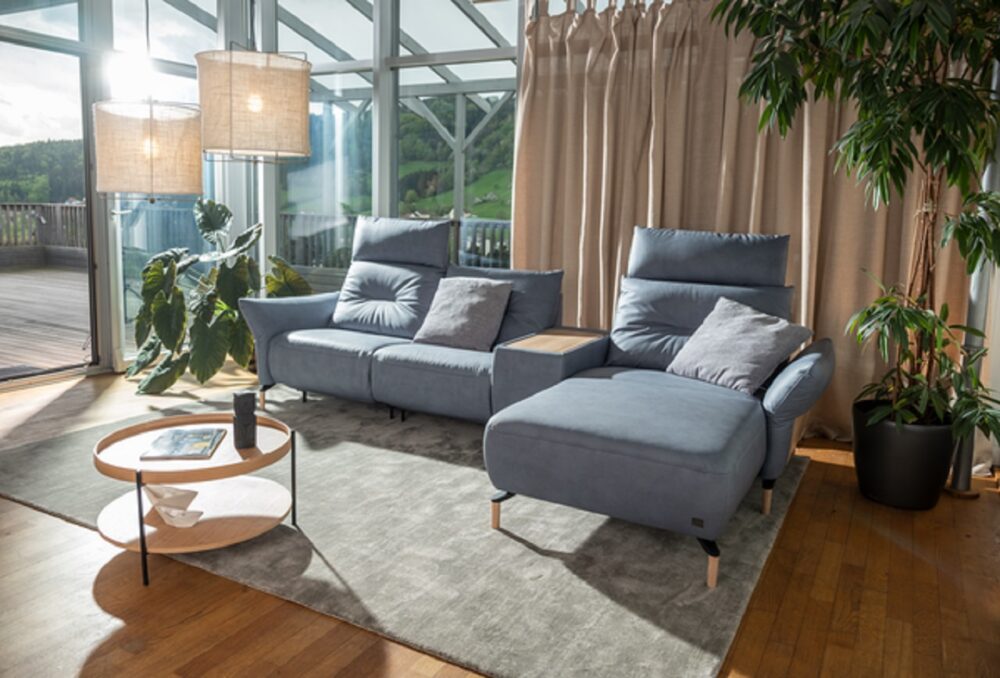 Wie wir leben, definiert unsere Ansprüche an unsere Möbel. Flexible Lifestyles brauchen flexible Wohnräume. Sie wünschen sich ein Sofa zum Entspannen und Relaxen? Ein Knopfdruck genügt und Lyon verwandelt sich in eine Chill-out-Liege . Sitzfläche und Rückenlehne gleiten nach vorne, wodurch aus dem ursprünglichen Sitzplatz eine Liegefläche entsteht.