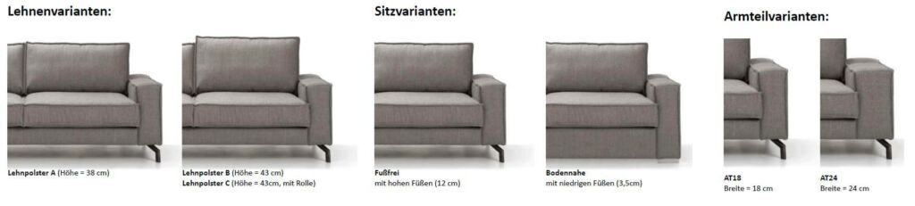 Die Sitzgarnitur Amadeo ist mit losen Rückenlehnkissen ausgestattet. Durch die unterschiedlichen Elemente kann jede gewünschte Größe zusammengestellt werden. Bei der Polsterung haben Sie die Wahl zwischen Federkern, Kaltschaum oder Sandwichaufbau. Die große Auswahl an Stoffen und Leder lassen keine Wohnträume offen!